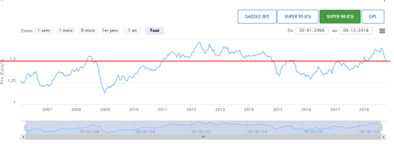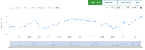 Dans le cadre de la fiscalité écologique liée aux objectifs de transition énergétique, l’Etat avait annoncé une hausse des taxes de 7 centimes sur le diesel et 4 centimes sur l’essence au 1er Janvier 2019 puis a annoncé un report de 6 mois avant de décider dès le lendemain d’annuler tout projet d’augmentation pour l’ensemble de l’année 2019.