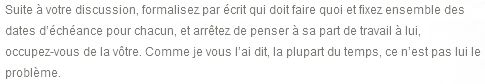 Note : la seule manière de résoudre un problème « humain » est de se parler.