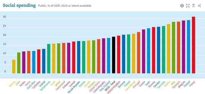 La France est totalement à l’opposé car l’état est quasiment partout et le taux de prélèvements obligatoires est très élevé. La France redistribue beaucoup de richesses aux plus pauvres contrairement à beaucoup de pays.