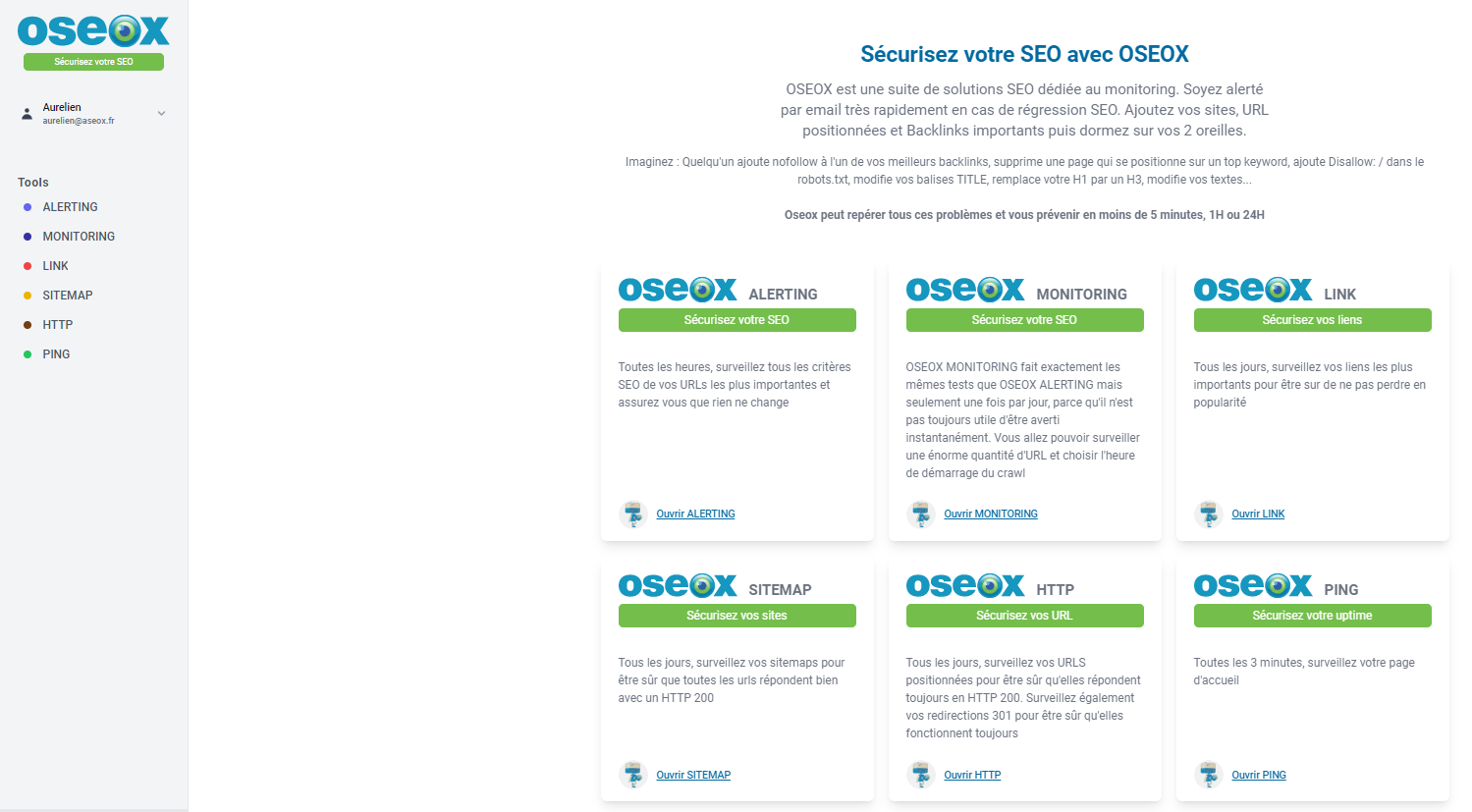 Oseox devient donc une véritable suite de logiciels SEO dédiés au monitoring. Il comprend les 4 logiciels que nous avions lancés :